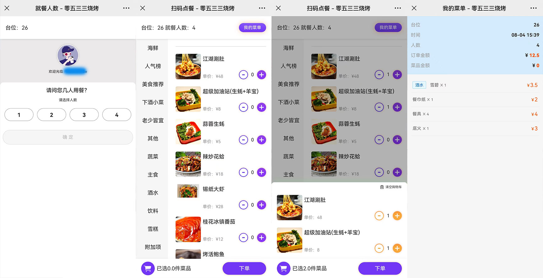 點餐程序頁面由后臺管理+手機點餐+吧臺操作頁組成,后臺生成二維碼,顧客掃碼點餐,吧臺操作結(jié)算。操作簡單、使用方便,獲得廣大商戶好評。